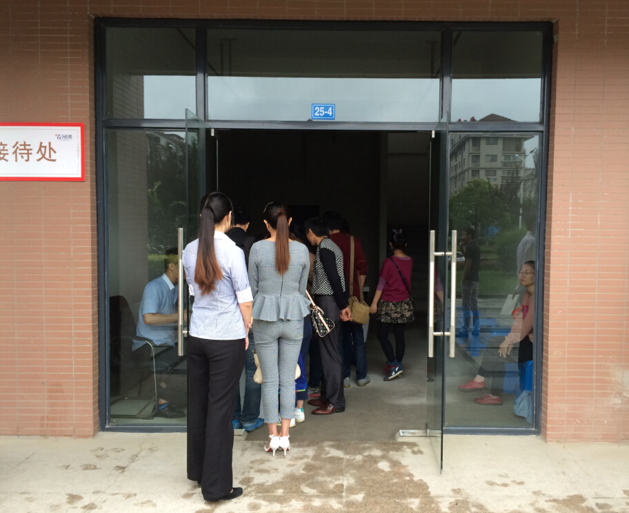 1、業(yè)主在接待處排隊等候辦理交房手續(xù)