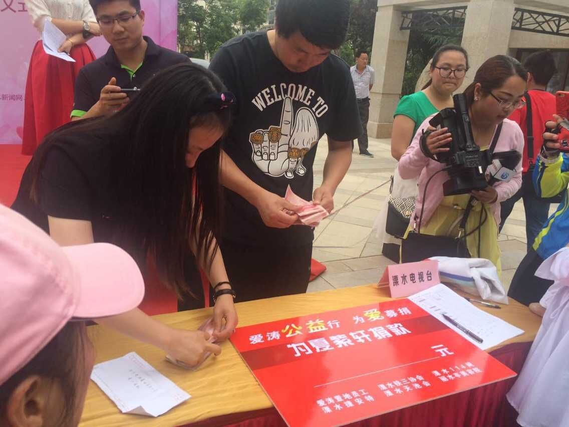 2015年6月7日,高考第一天,這是對莘莘學(xué)子三年來努力付出具有重要意義的一天;同一天,除了牽動人心的高考,一場愛心捐款活動也在溧水溫情上演。新實小學(xué)六(3)班夏紫軒同學(xué)因白血病住進了醫(yī)院,高額的醫(yī)療費用讓這個原本收入不高的家庭雪上加霜。得知消息后,為了幫助夏紫軒同學(xué)度過難關(guān),與病魔堅強抗爭,愛濤置地公司積極號召社會愛心人士,聯(lián)合置地公司全體員工、鐵人三項運動協(xié)會、新實小學(xué)學(xué)生家長、溧水各大主流媒體及天岳城的新老業(yè)主,一同在天岳城售樓處前為夏紫軒同學(xué)舉辦愛心募捐活動。