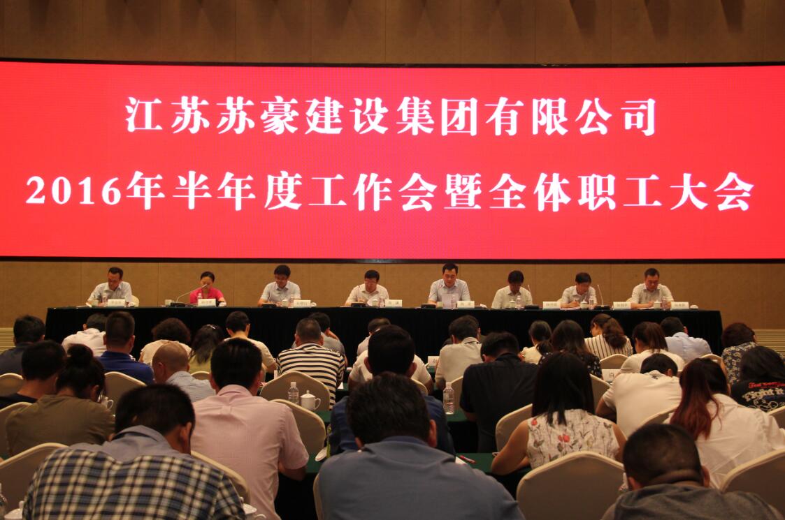 8月3日,建設(shè)集團(tuán)召開2016年半年度工作會(huì)暨全體職工大會(huì),總結(jié)上半年工作,部署下半年目標(biāo)任務(wù),并表決通過《江蘇蘇豪建設(shè)集團(tuán)有限公司員工違規(guī)處分規(guī)定(試行)》。建設(shè)集團(tuán)領(lǐng)導(dǎo)班子、集團(tuán)本部及子公司全體員工參加會(huì)議??毓杉瘓F(tuán)副總裁、建設(shè)集團(tuán)黨委書記周謙出席會(huì)議并講話。孫新山總經(jīng)理主持會(huì)議,并傳達(dá)控股集團(tuán)上半年經(jīng)濟(jì)工作會(huì)議精神。